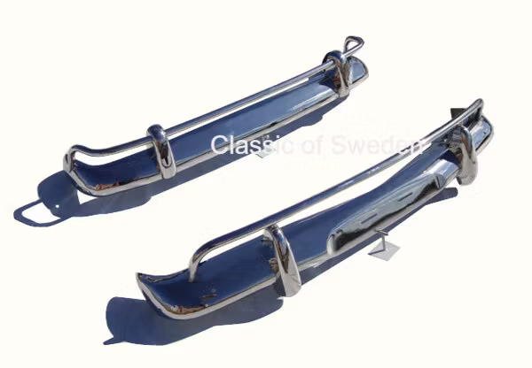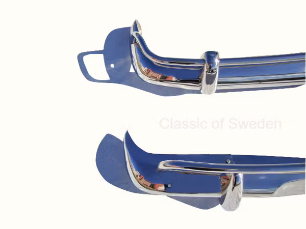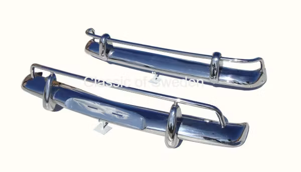 Nytillverkade stötfångare fram och bak i rostfritt stål till Volvo Amazon USA mod. (1956–1970).